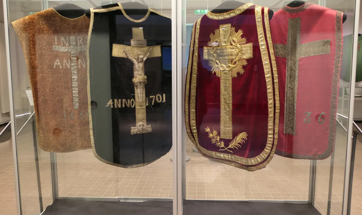 Lördagen den 28 februari kl. 14 är Margit Holmberg på plats i sin utställning ”Ordets djupa färger”. Hon har i över tio år arbetat med att inventera kyrkornas textilier.
