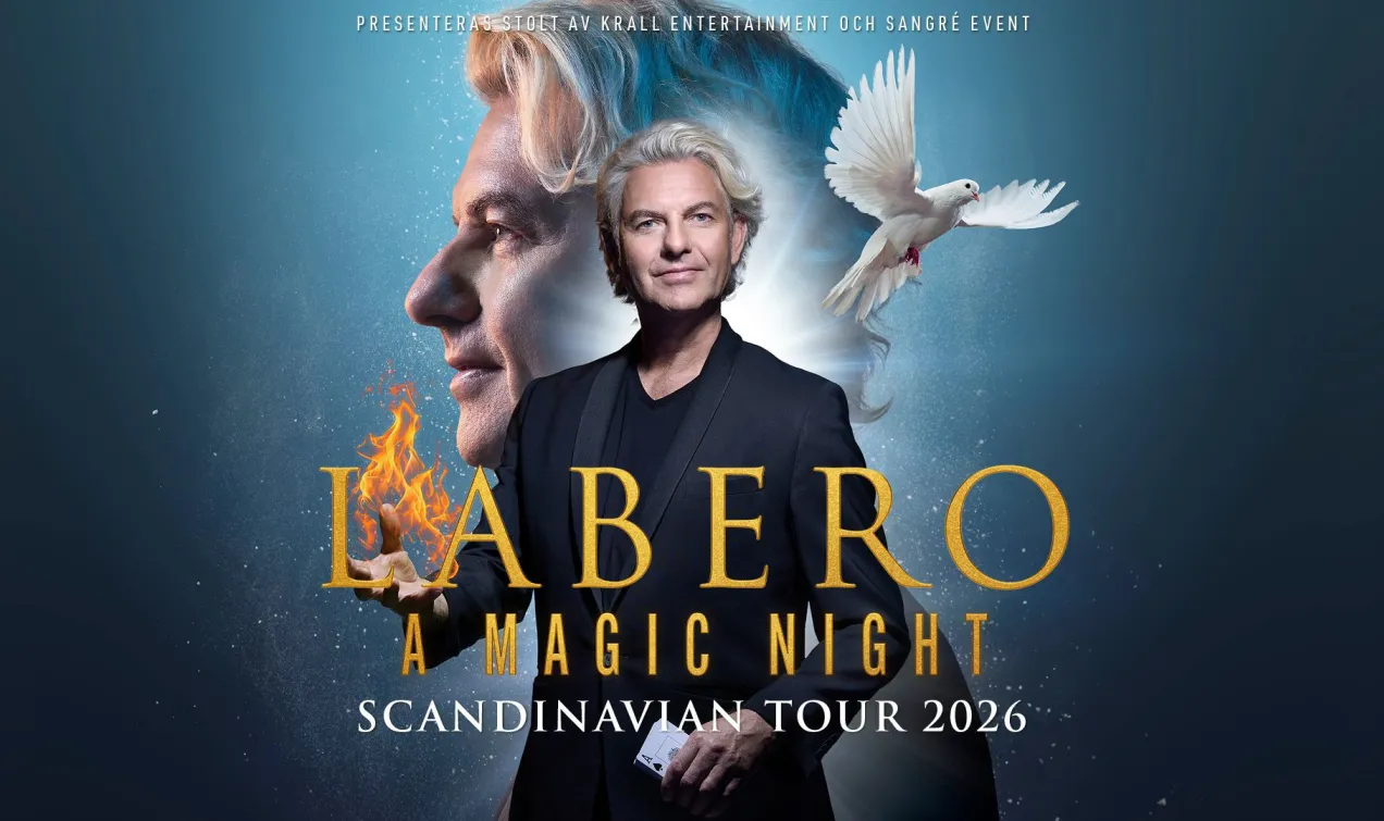 LABERO – A Magic Night Scandinavian Tour 2026 Mannen, myten, magikern Labero kommer tillbaka till Skandinavien efter en utsåld vårturné 2025. Känn kraften vibrera när en av världens skickligaste illusionister bjuder på sina favoritnummer och berömda close-ups. Så gör dig redo för en spännande afton där han garanterat kommer vända uppochner på allt du trodde var möjligt eller omöjligt. Välkommen på en mystisk resa genom hans magiska värld, precis i gränslandet mellan dröm och verklighet.