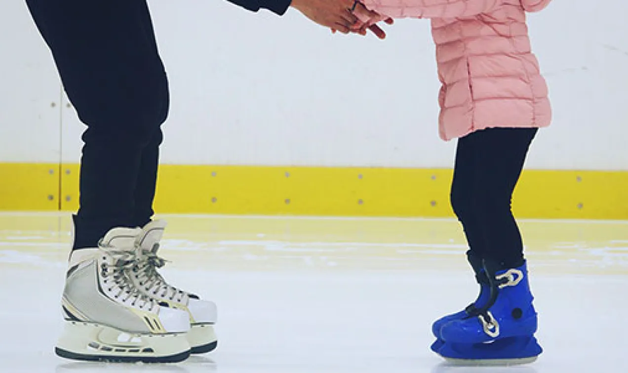 - ombyte till skridskor sker i omklädningsrummen