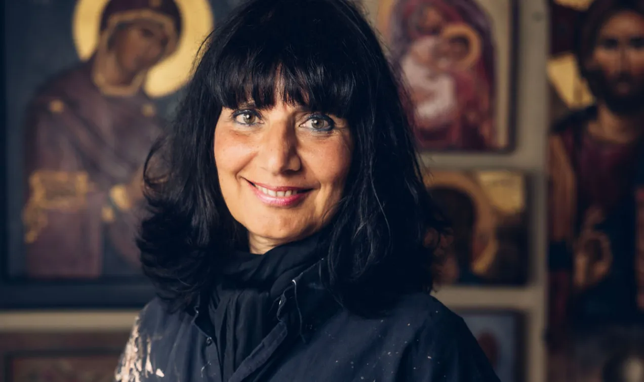 Efti Papadopoulou Georlin är verksam ikonmålare sedan över 20 år tillbaka och bor i Stockholm. Hon föddes i Grekland och kom till Sverige som tvååring år 1967. Efti Papadopoulou Georlin står med ena foten i den grekiska traditionen och den andra i den svensk-kyrkliga. Intresset för det visuella uttrycket har följt med sedan barndomen, först genom porträttmåleri och senare genom en fördjupning i ikonkonsten. Ikonerna fångade hennes intresse genom mystiken, den särskilda måleritekniken och det meditativa förhållningssätt som måleriet kräver.