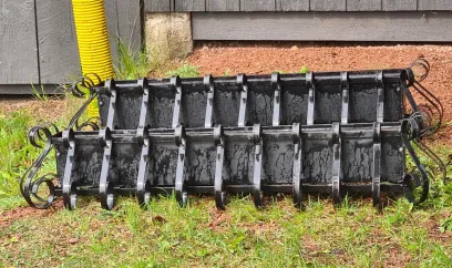 Smide i svart stål med blomlådor innehåller dränerings skiva