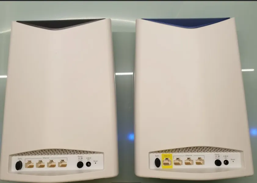 1 x Orbi Pro Router (SRR60), 1 x Orbi Pro satellit (SRS60), med väggfästen och takfästen.