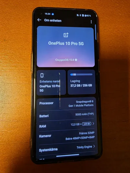 Snapdragon gen 1 chip 50mp kamera 80w laddning 50w trådlös laddning etc. Suverän skärm. Och 256Gb minne 12Gb ram