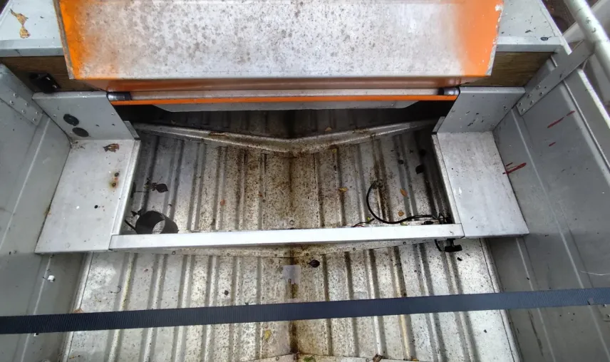 Snurran behöver ses över och kåpan är försvunnit.