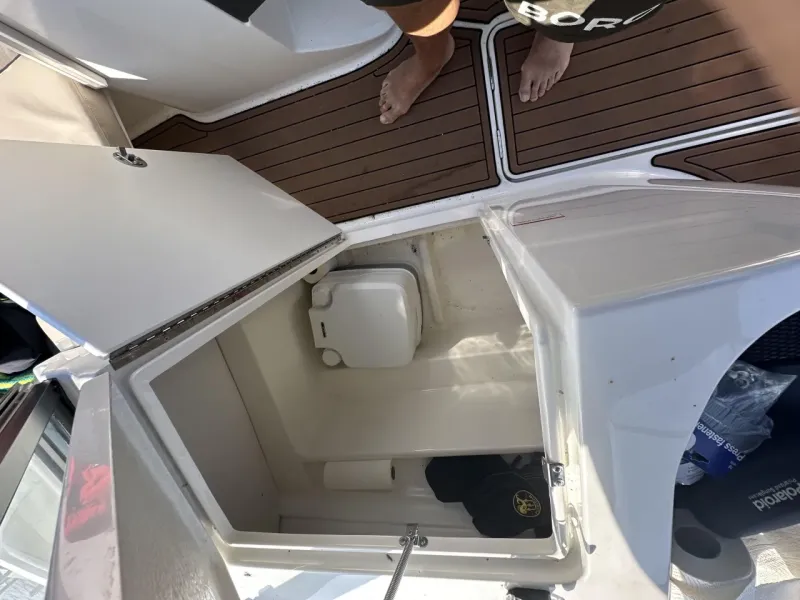 - Omklädningsrum med valfri portpotty ger bekvämlighet som normalt bara finns på större båtar.