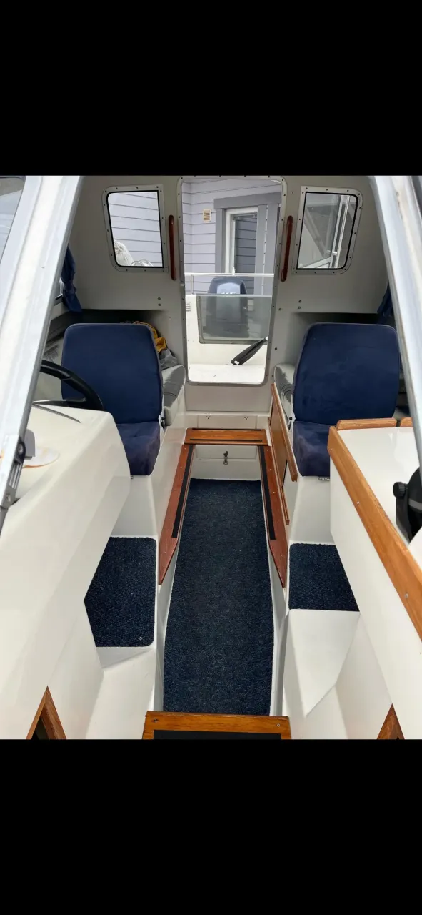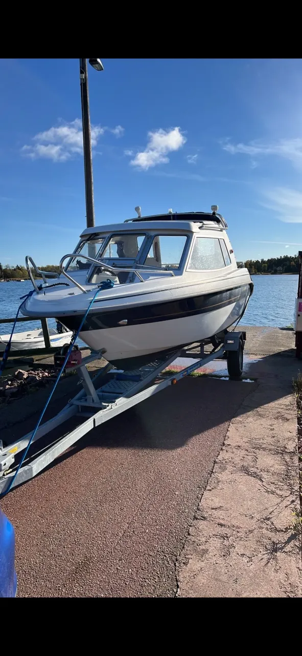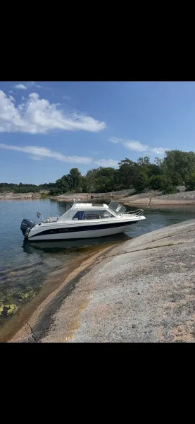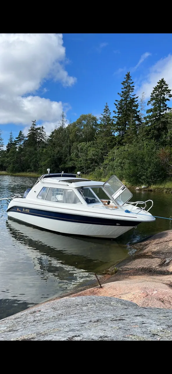 Akterkapell, fendrar, tampar, brandsläckare och standardutrustning medföljer.
