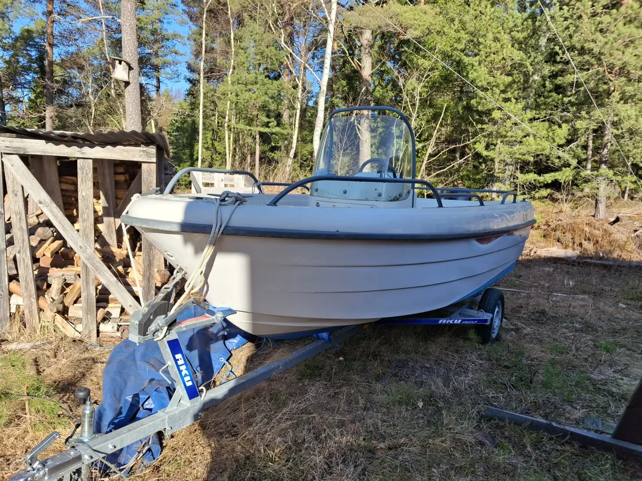 Terhi 45F Vario från 2006 med defekt 50hk suzuki säljes. Inklusive trailer, plotter och tågvirke.