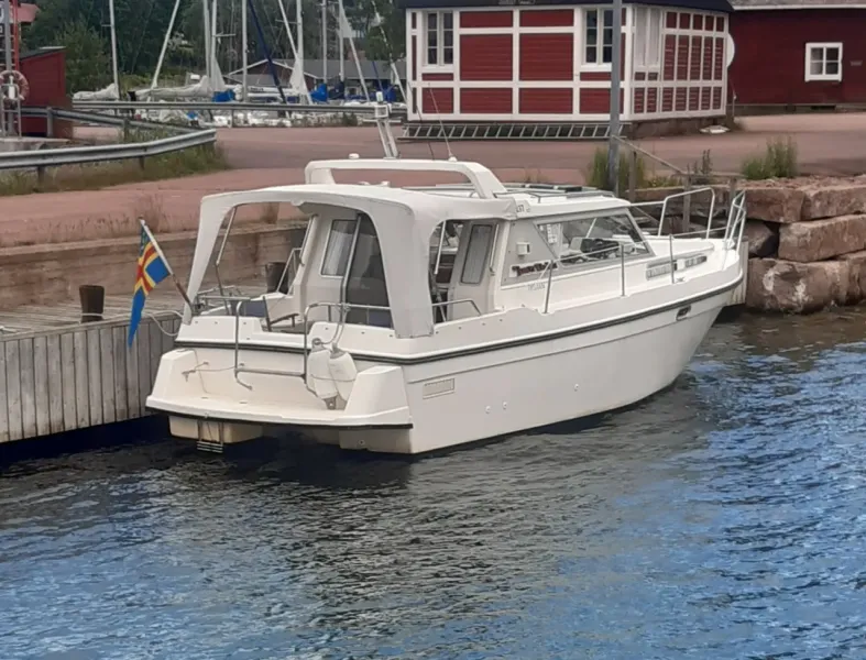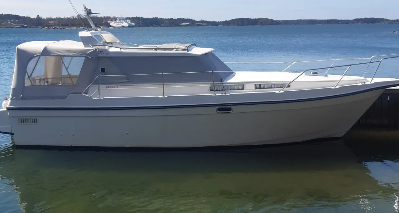 Tristan 820. Dryga 9m lång och 3 m bred.