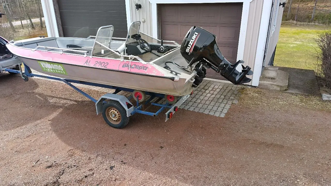 Big Buster med Suzuki 60 hk 4-takt ca 140 tim samt trailer 7 800 € Kan provköras finns i Geta