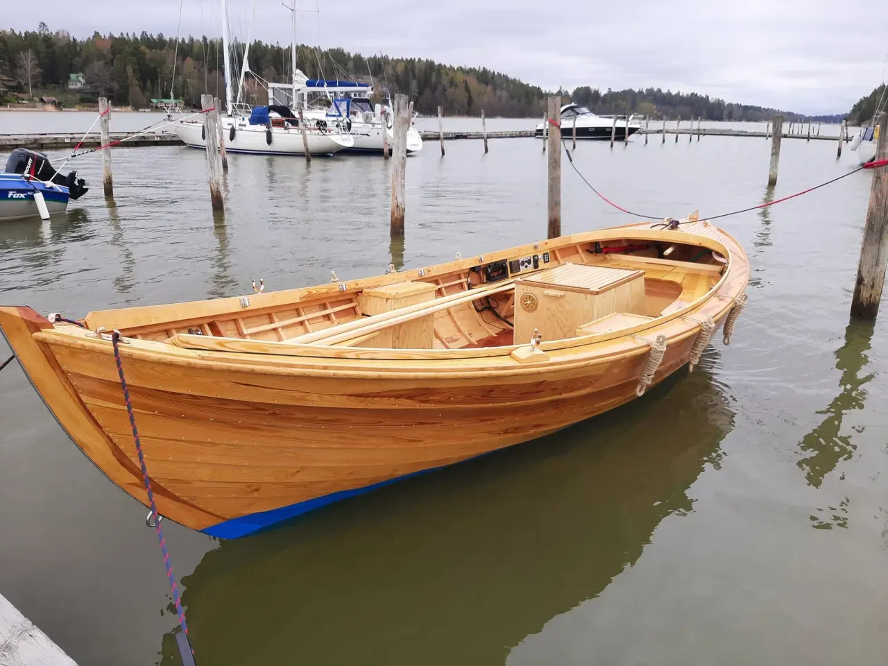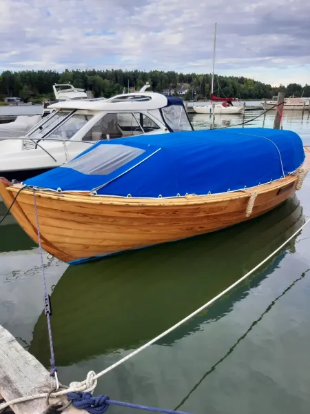 Föglö-snipa byggd i Vårdö 2021 6,5x 2,2m. Motor Yanmar 2YM15 diesel med sötvattenkylning. Kapell, plotter, echo, log, batterimätare, 4x uppblåsbara flytväst, mm.