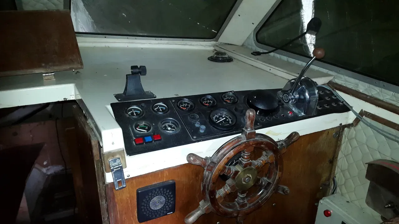 Rymlig familjebåt i behov av renovering inne i salongen annars i bra skick.VP ,TMD 40 A.Acuamatik 280 drev