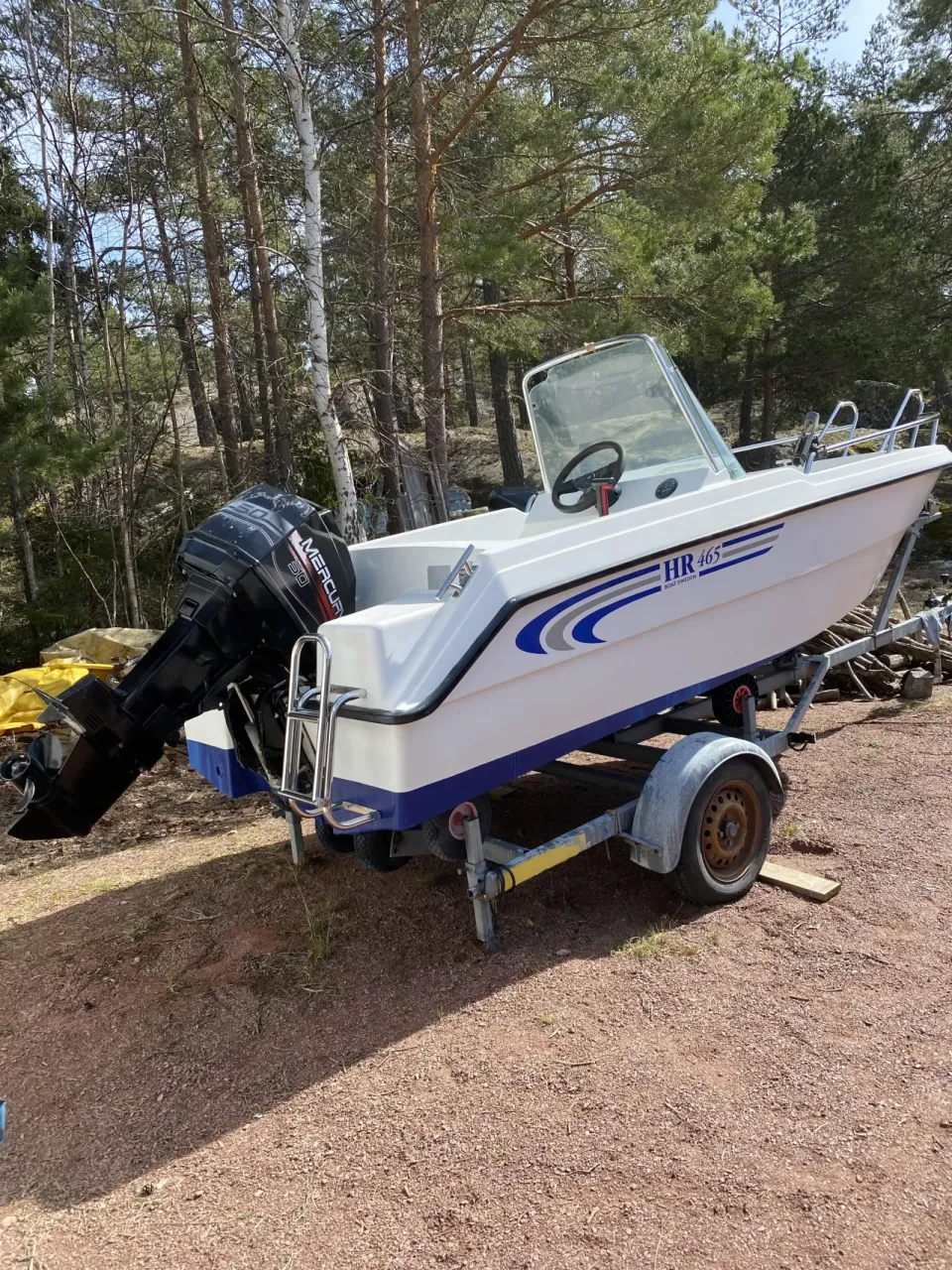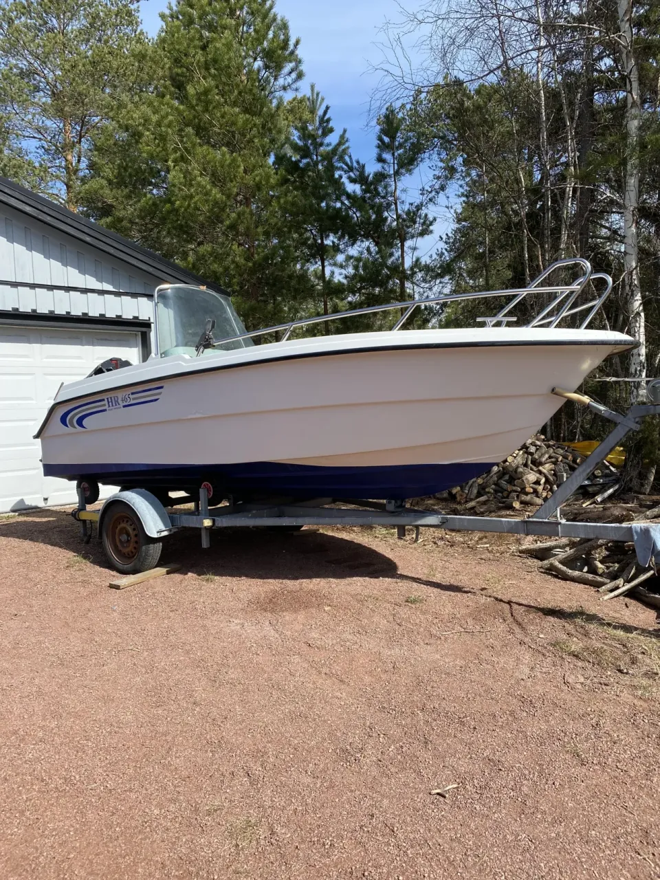 HK + vattenskidor. Vänster sida skrovskada som är lagad. Styrning lite trög.