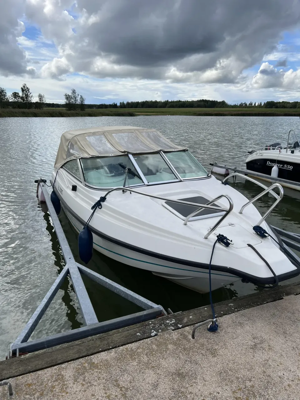 Uttern 5500 DC med Mariner 90 Optimax med utmärkta sjöegenskaper. Obesiktad trailer och Garmin plotter ingår. E-post eller telefon vid fler frågor eller visning.