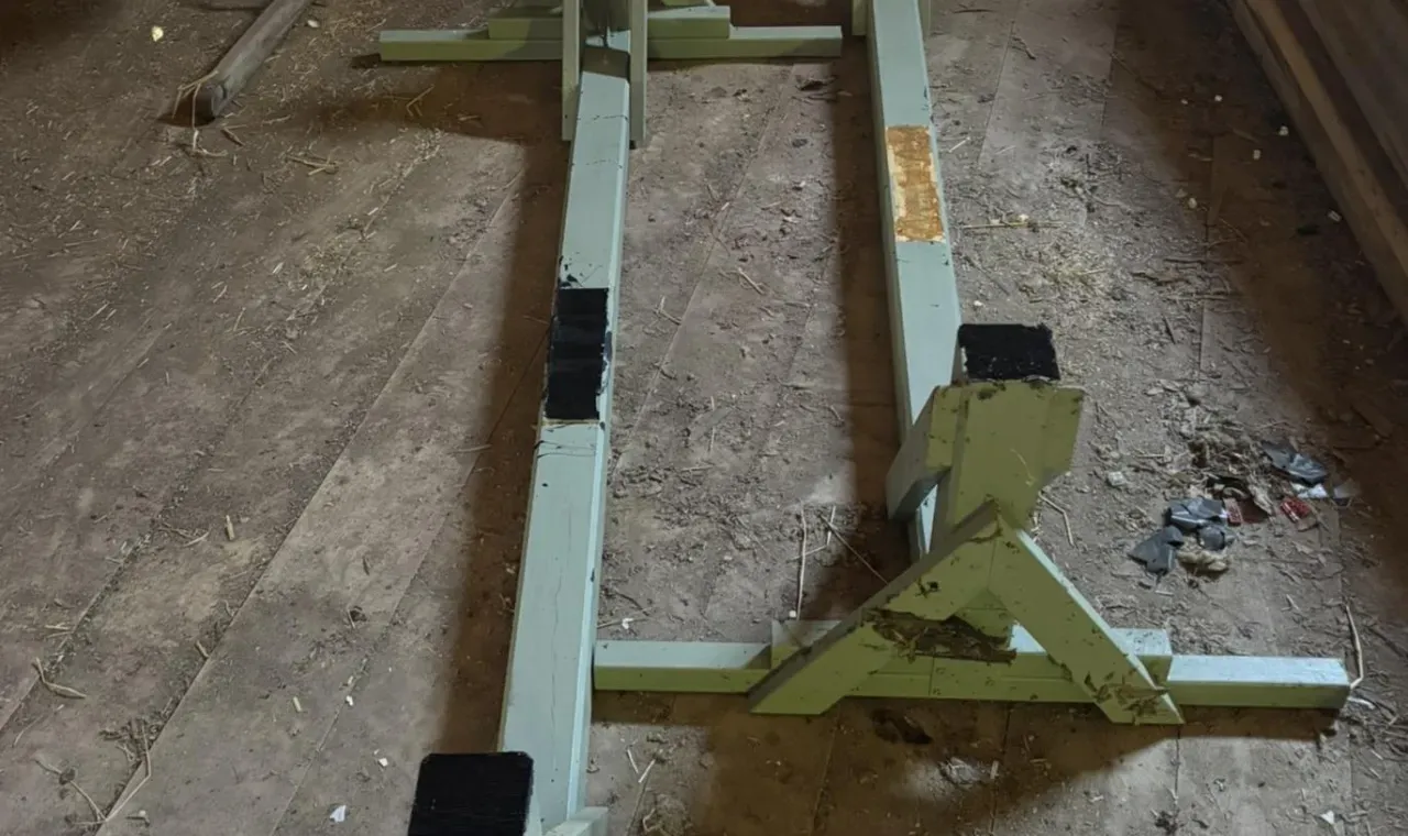 Hembygge i målat trä. Bra skick. Använda en vinter. Lagrade inomhus.