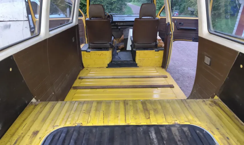 BusD modellen dock omreggad till paketbil. Original baksätena finns inte kvar tyvärr. Har lite vanlife inredningen som vi köpte(sätena som man kan bygga på ram o använda som bädd, vikbara bord som tar inte så mycket plats, tak korg för paddlebord eller kajak, osv osv) som kommer med.