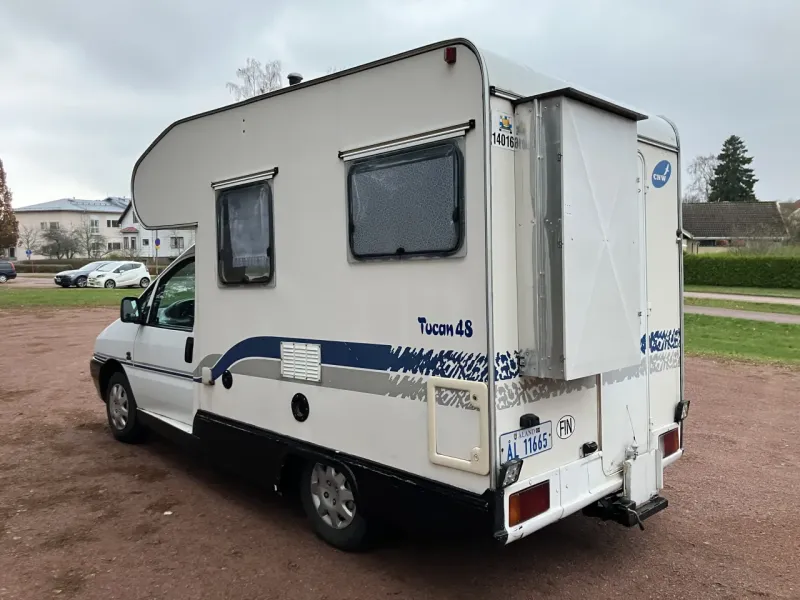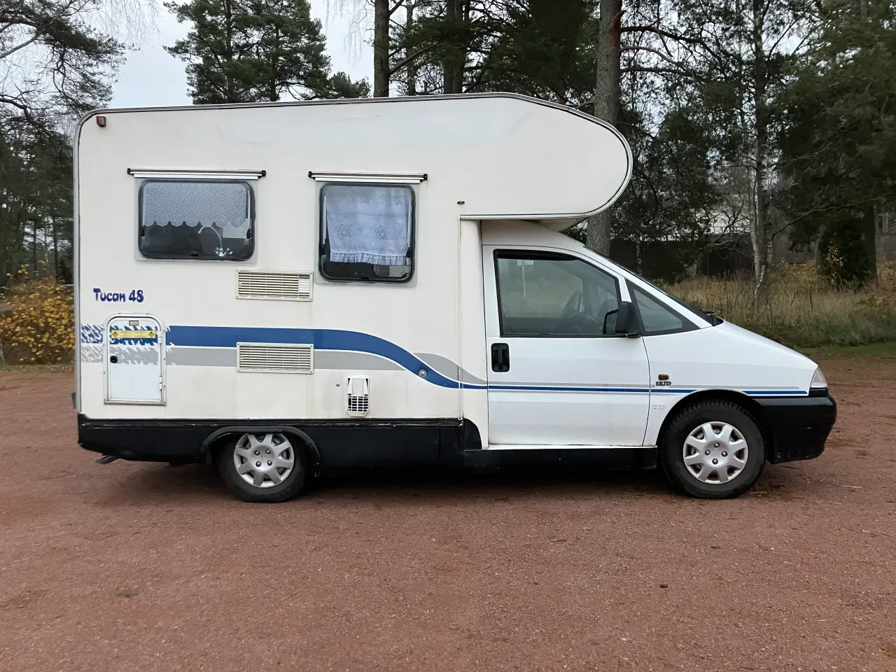 Husbil Fiat. Väldigt smidig och lättkörd. Lämplig för två personer. Strax under 5 m lång. Motor 1,9td och 5vxl, går billigt. Utrustad med varmt och kallt vatten, värmesystem, kyl med frysfack, kasettoalett, dusch, gasspis, dragkrok.