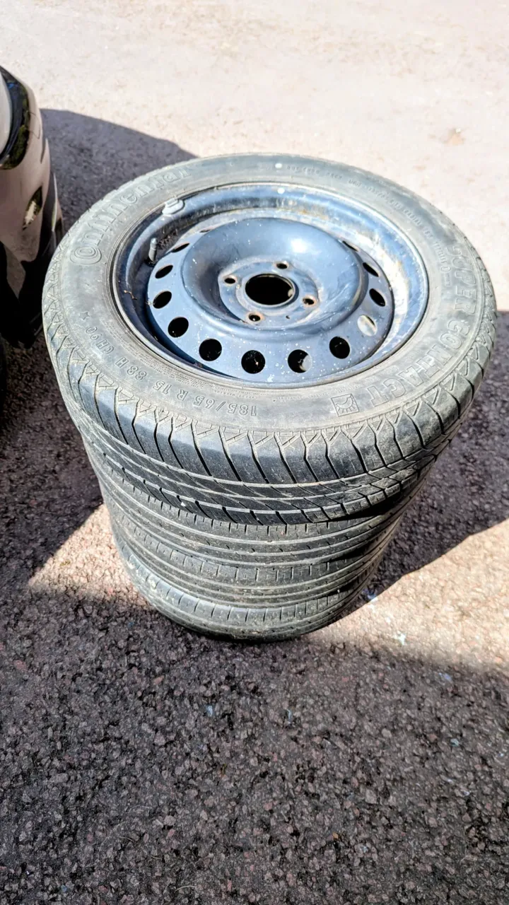 Vinterdäcken är I bra skick och sommardäcken har bra med yta ännu men är gamla, tillverkade 2013.