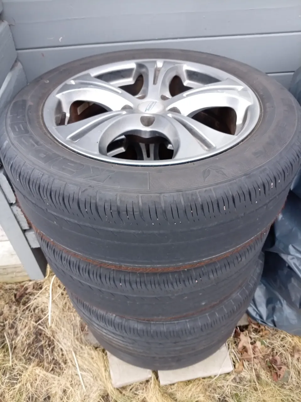 4st LättmetallfälgarArcastingTillverkad i Italien 17tum med slitna sommar däck, har suttit på dodge caliber suv.