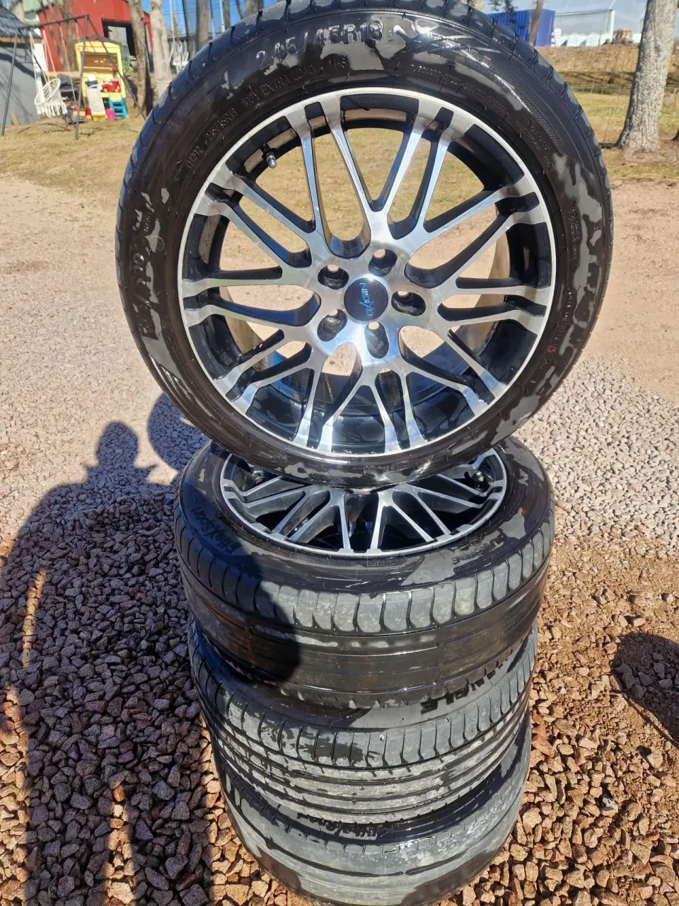 Till salu Oxigin-fälgar 5×112 på 18 et 50 8.5J×18EH2 rena, inte sneda eller svetsade. De monterades på en Audi A 4 B8. Fälgarna levereras med sommardäck 245/45 R18.