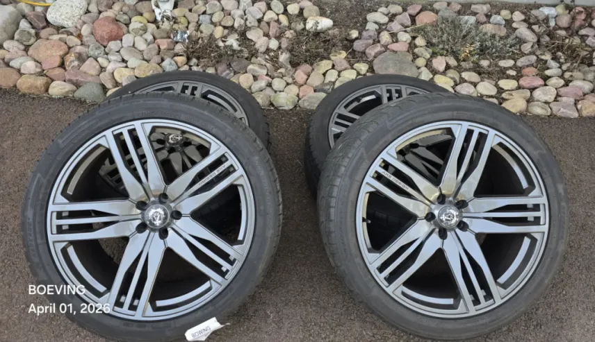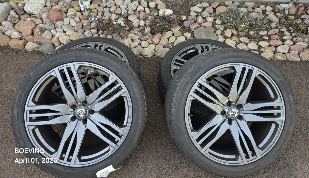 Axe Design Gun metal alu-fälgar 285/40R22 som har suttit på en VW Amarok. Fälgarna passar VW modeller med bultcirkel 5x120 från 2009 och framåt och däcken har har gått en sommar. Spacerplattor nya (inte med i priset) 25mm bak och 30mm vilket för ögat gör bilen bredare och ger en stabilare gång.