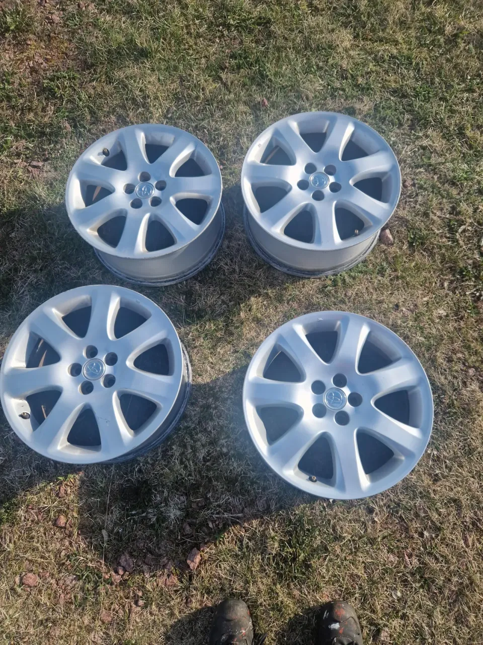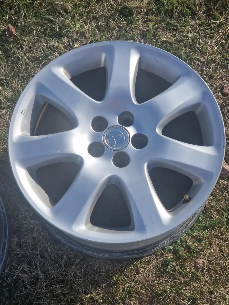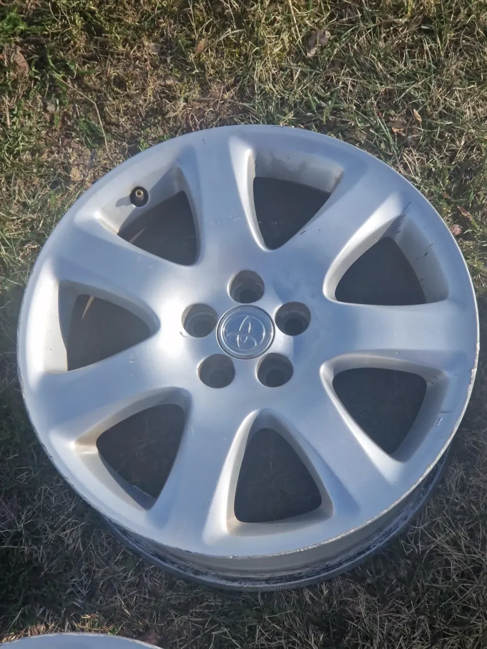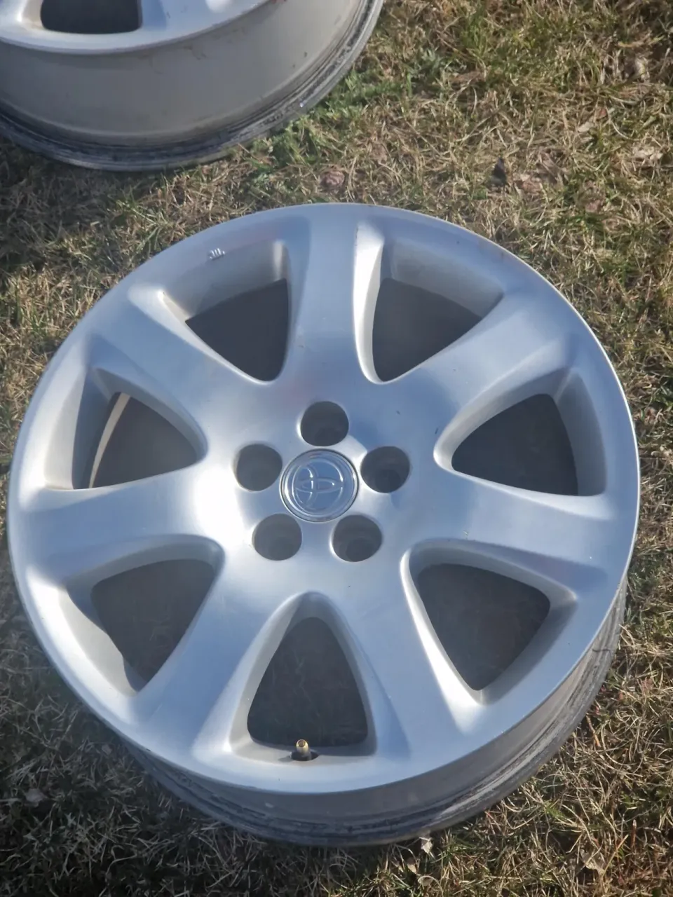 Säljes 4x Toyota aluminiumfälgar i ok skick från en Avensis (första och andra generationen), passar troligen också några andra modeller med 5x100 bultmönster t.ex. Carina E och äldre Prius och Celica. Inga däck på. Små kantstötningar (på bild värsta) och några repor men allmänt i bra skick, ingen korrosion och gick bra att köra med förra sommaren. Bultar ingår ej men kan diskuteras för extrapris (vanliga Toyotamuttrar)