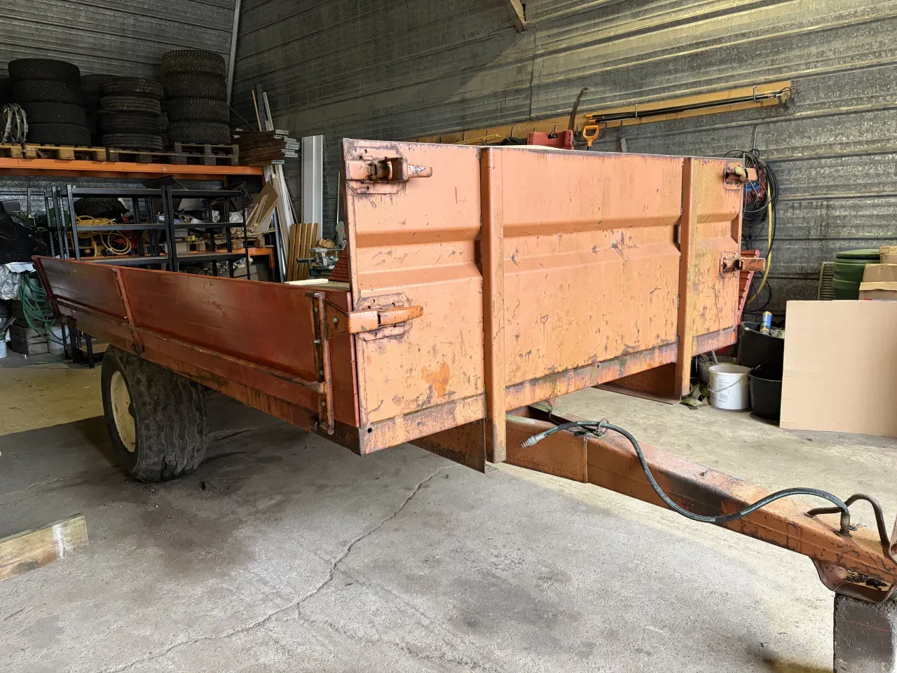 Släpvagn med tipp 5 ton med nya flaksidor.