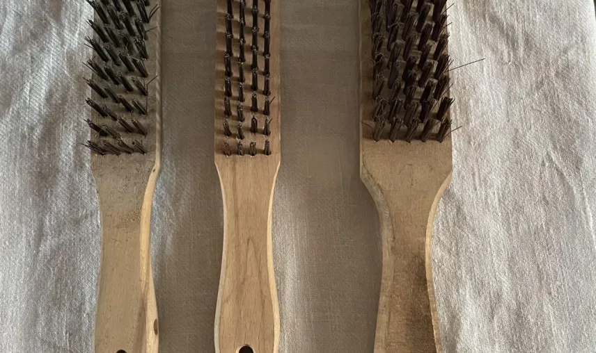 3 st Stålborstar med träskaft oanvända