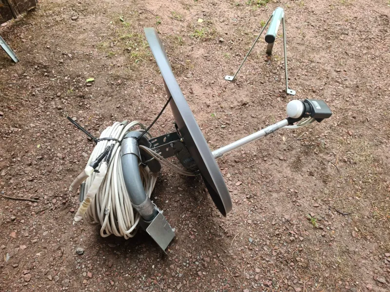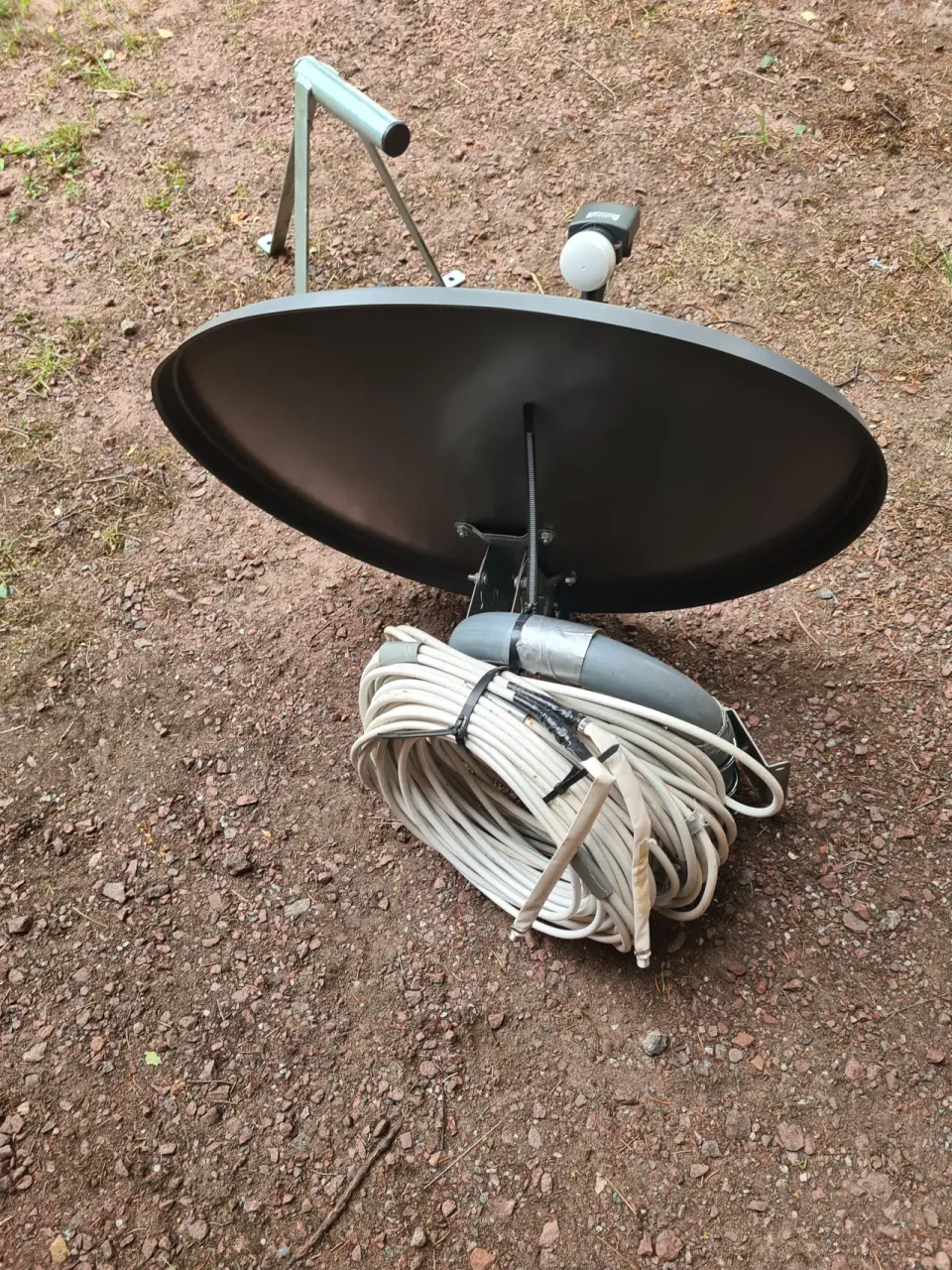 Parabol med kabel2x25m och 2st fästen. Kan användas till husbil/husvagn mm .
