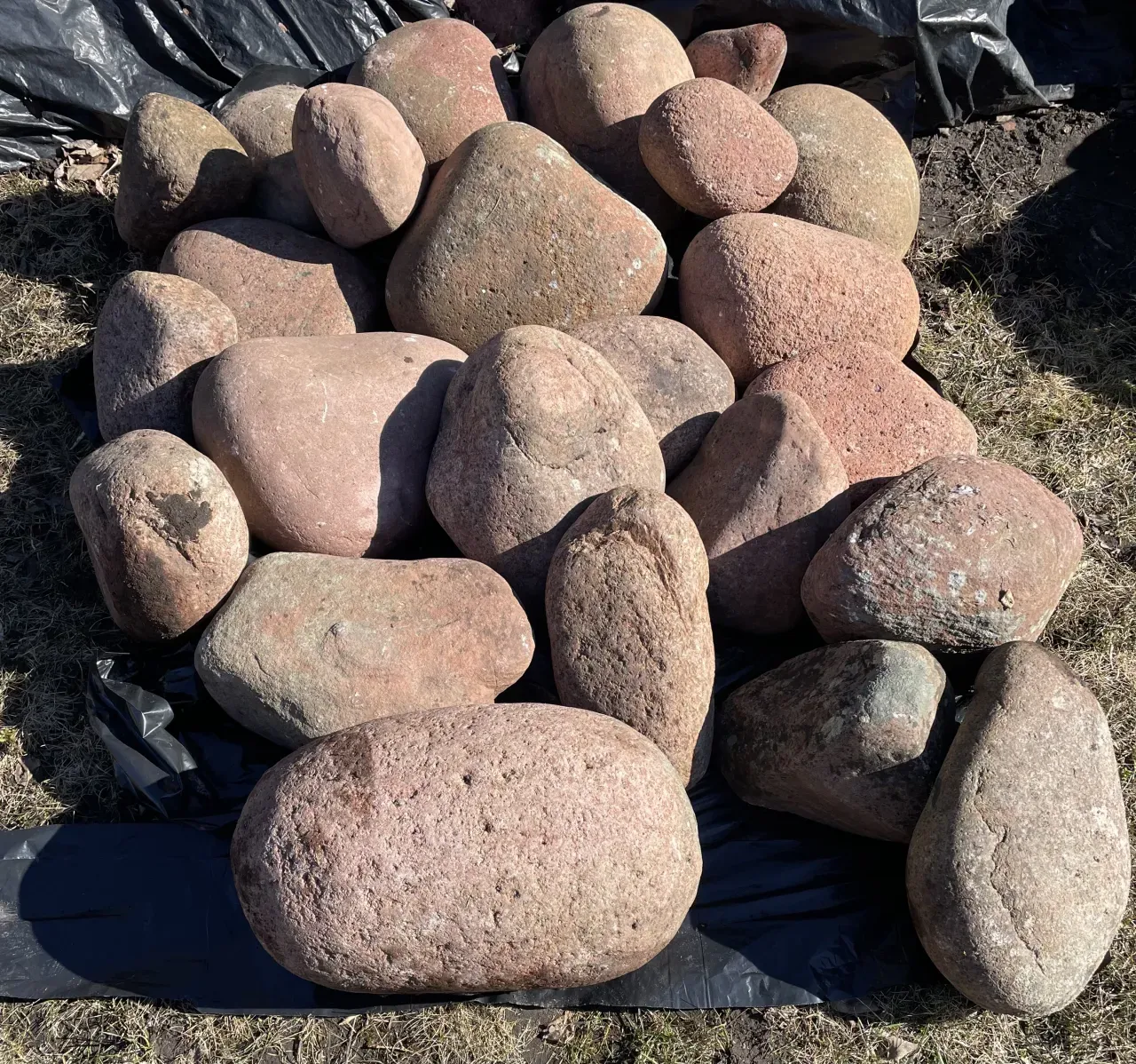 Stora kullerstenar till trädgården, runt land , mur mm kan finnas möjlighet till transport