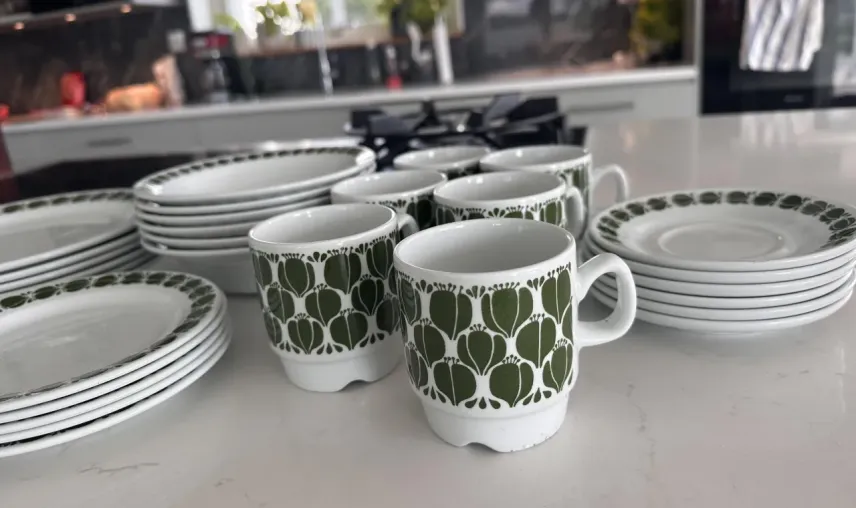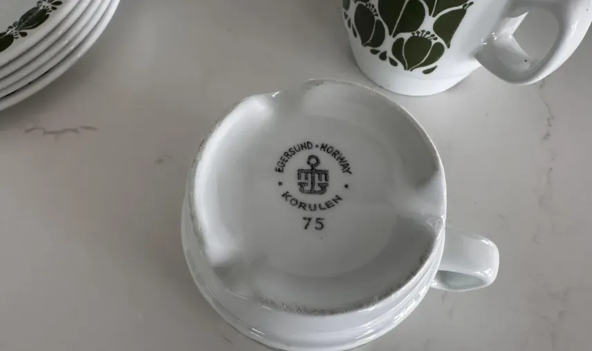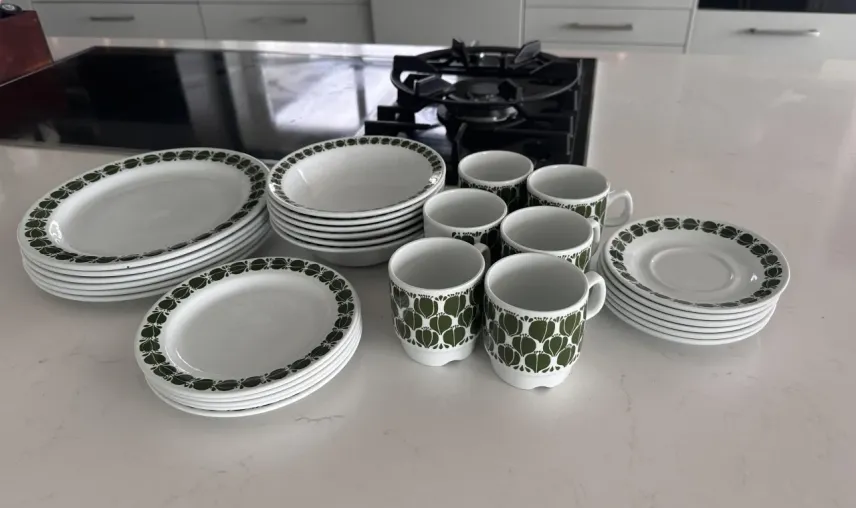 Hel och superfin servis med 6 stora mattallrikar, 6 djupa tallrikar, 5 små tallrikar och 6 kaffekoppar med fat.