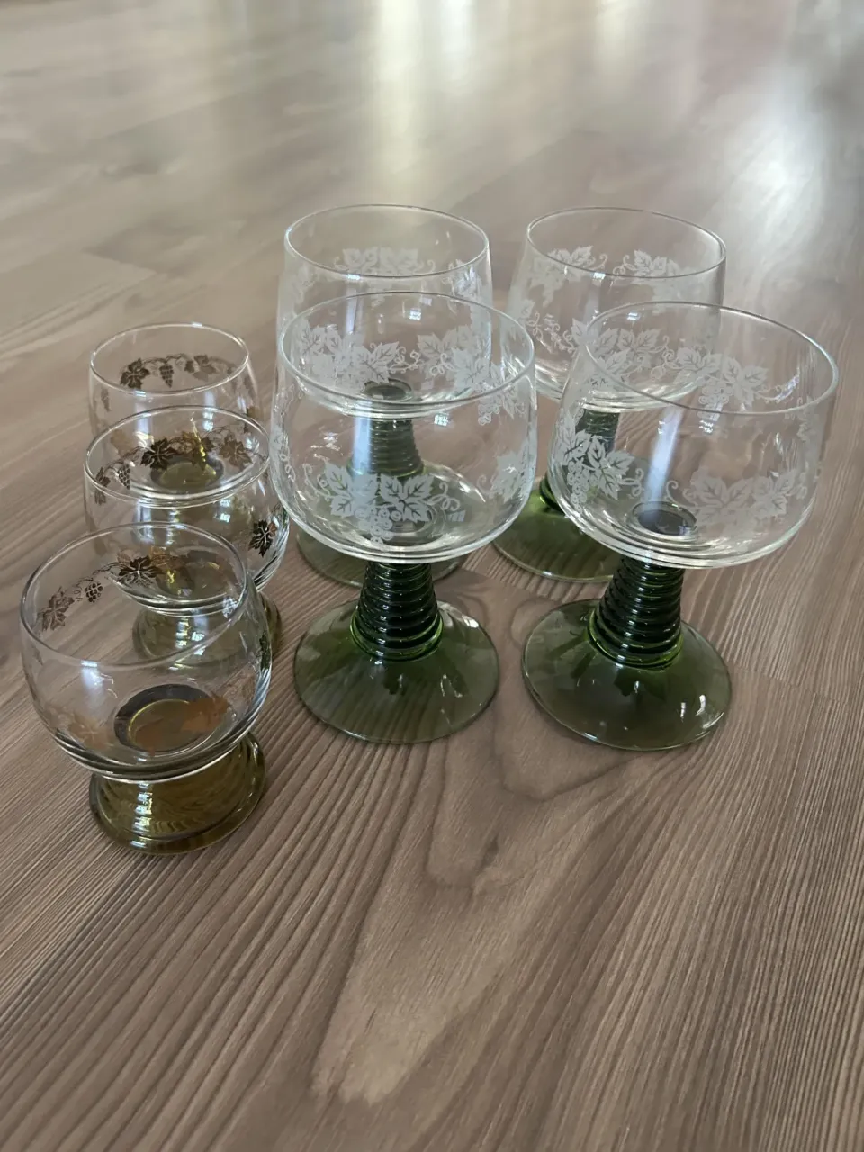4 vinglas och tre likörglas