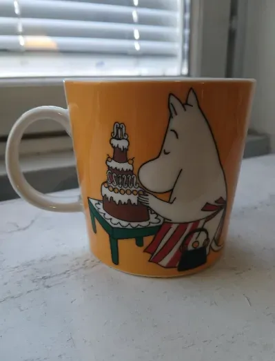 Muminmugg Muminmamma, aprikos (2014-2020). Muggen är i mycket bra skick. Finns i norra Mariehamn.