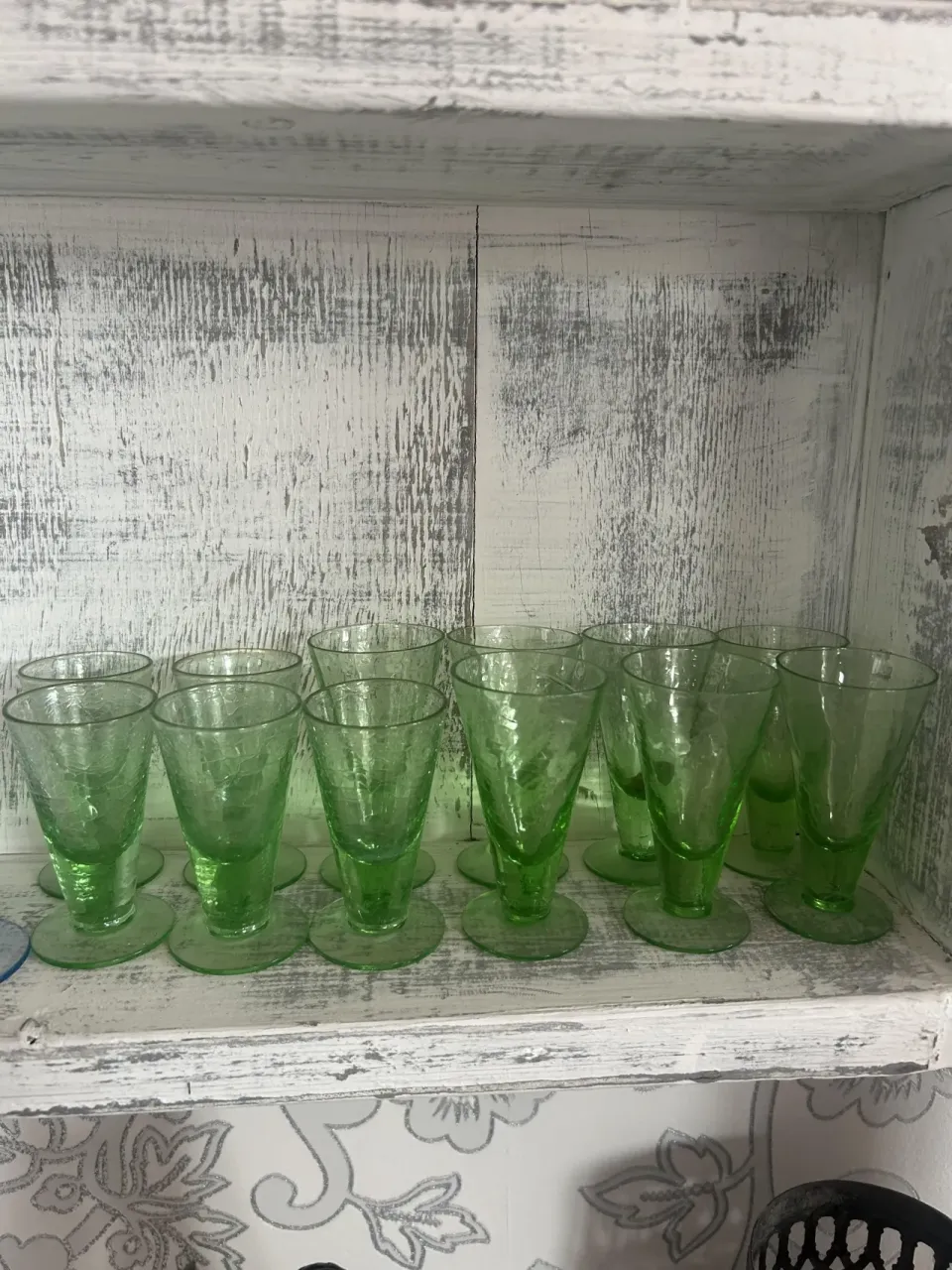 12 stycken Gröna i pressglas ,7 är lite större än de andra 5.