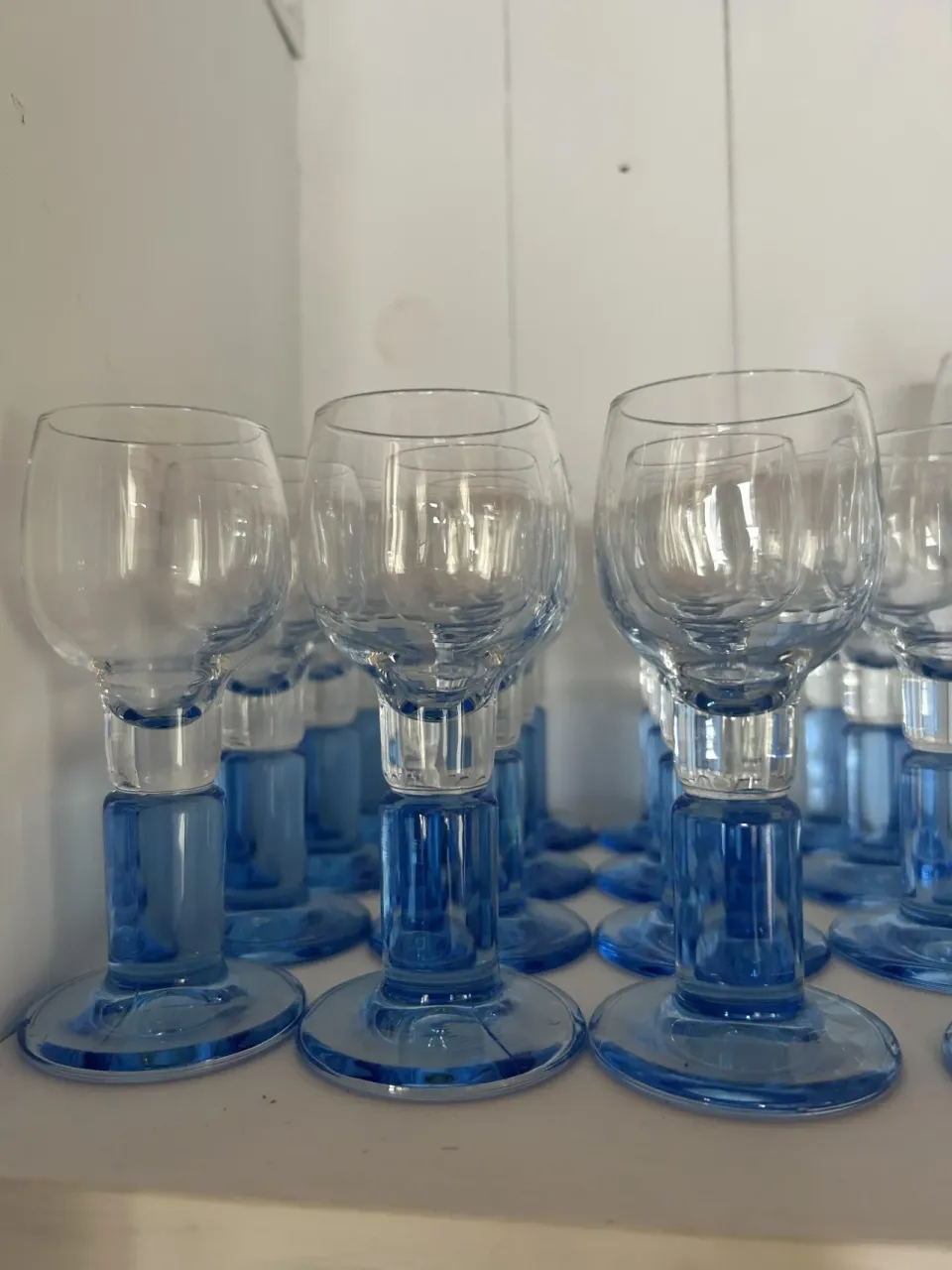 5 stycken snapsglas med blå fot