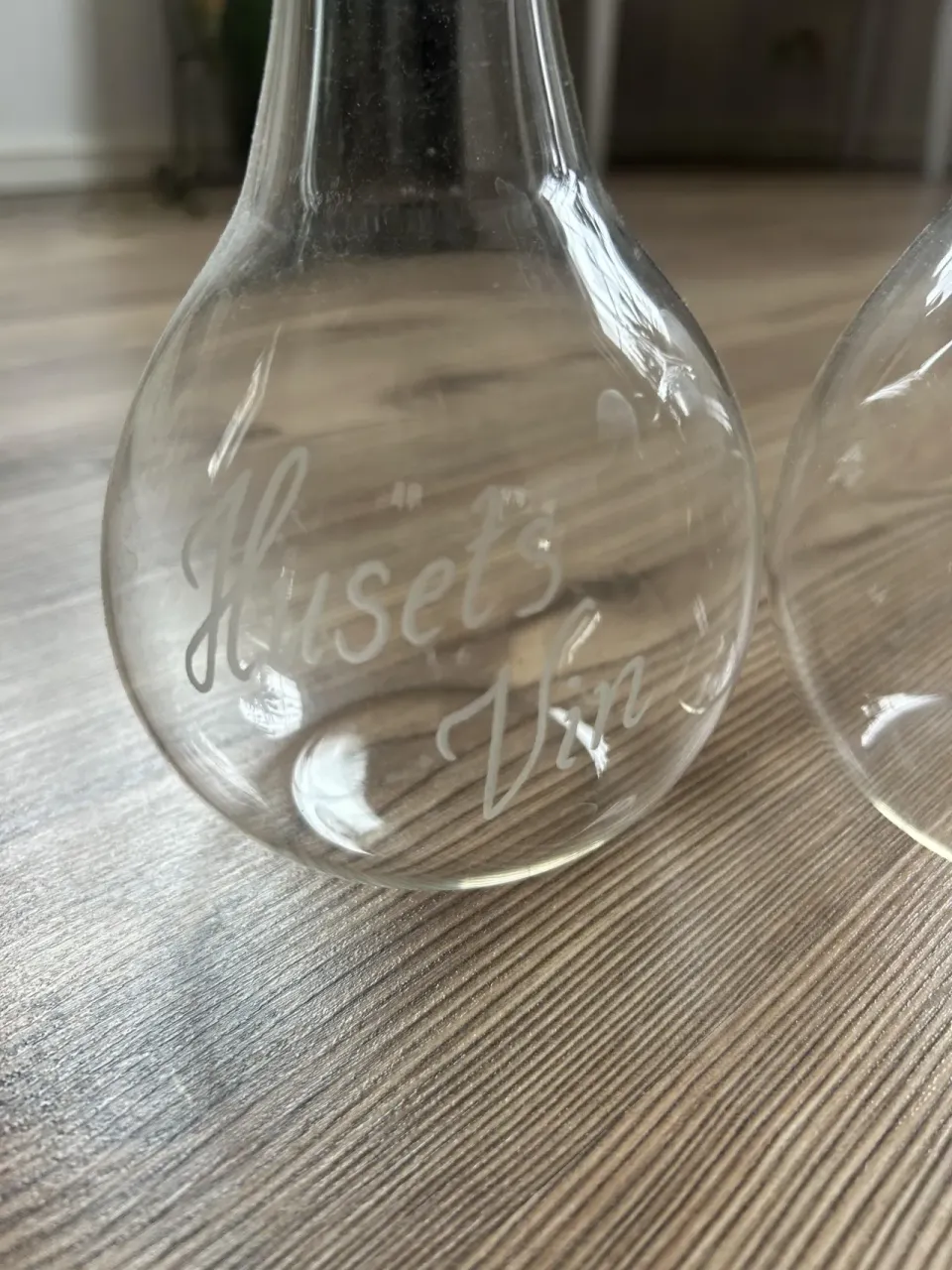 Två stycken en har text husets vin