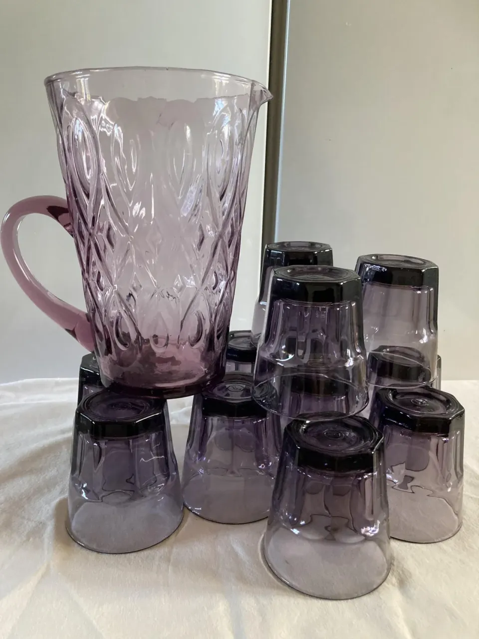 Riktigt fin oanvänd glaskanna med 12 dricksglas i förpackning