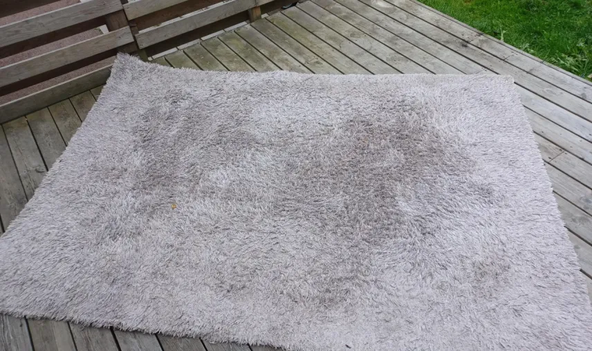 Grå matta ca.3×2m, ej mätt exakt. Använd på terrassen och ej tvättad.