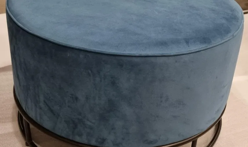 Stor blå/turkos pall, höjd 49 och diameter 80 cm.