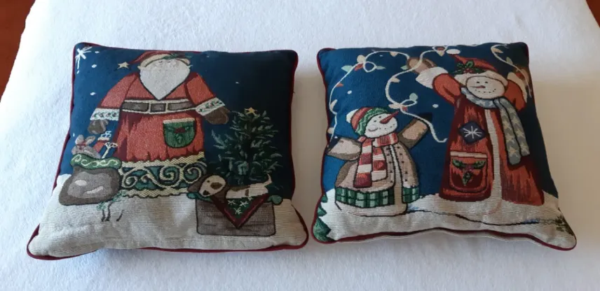 2 st prydnadskuddar med julmotiv, 35 x 35 cm.