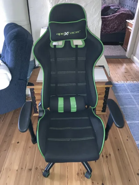 Apex racer gaming stol säljes, funkar bra, gnisslar lite och har en reva på ena armstödet.