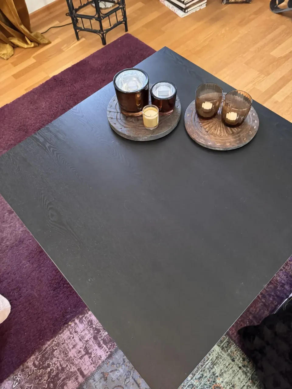 Svart soffbord med svarta metallben
