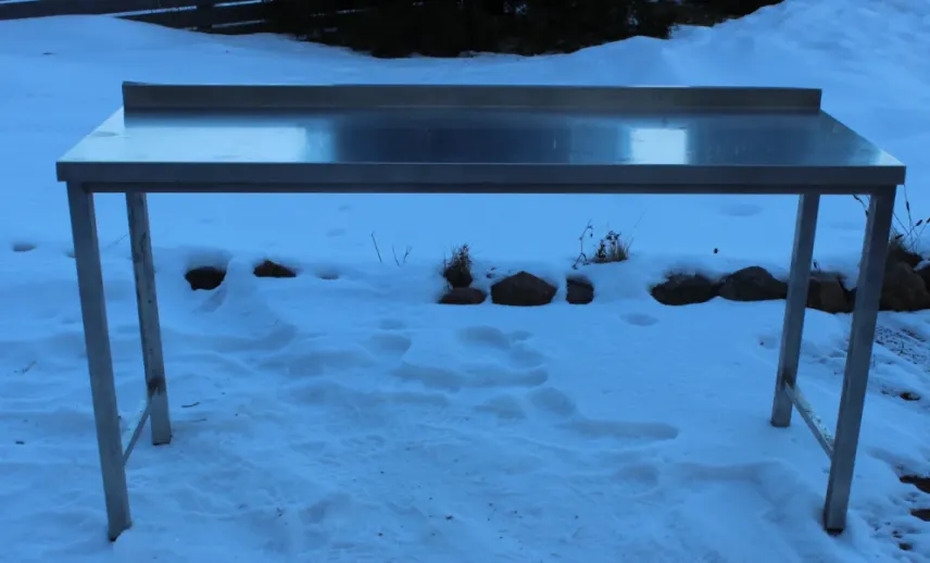 Beg. rostfri arbetsbänk.