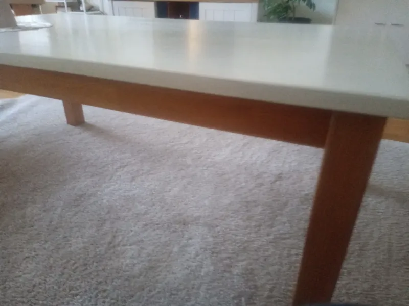 Soffbord i ek med vitmålad bordsskiva.120x73.Höjd50cm