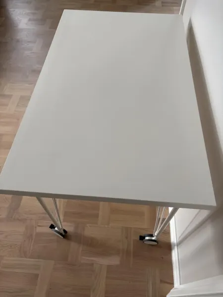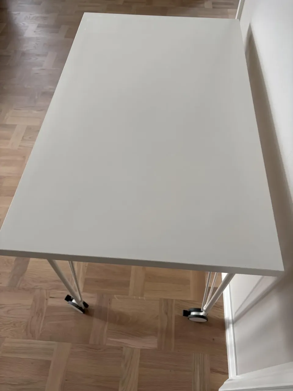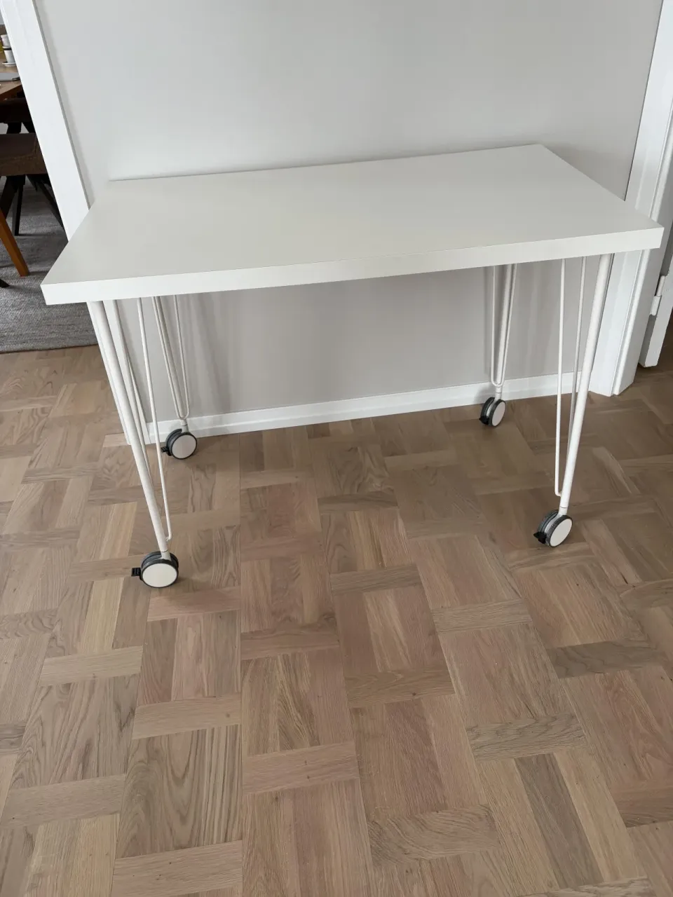 Litet behändigt IKEA bord i bra bruksskick, hjulbromsar fungerar.