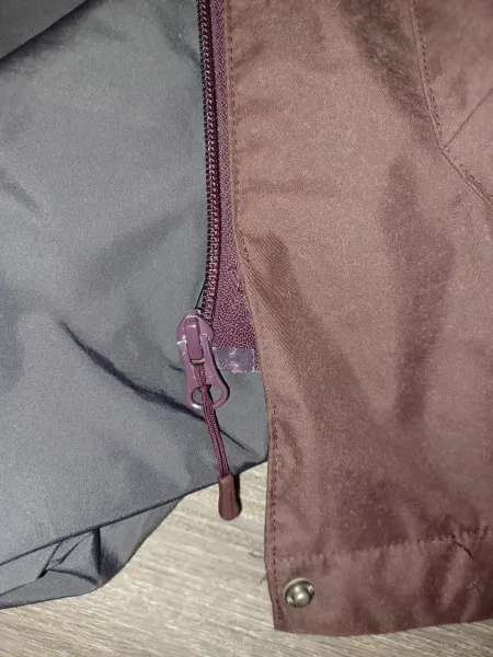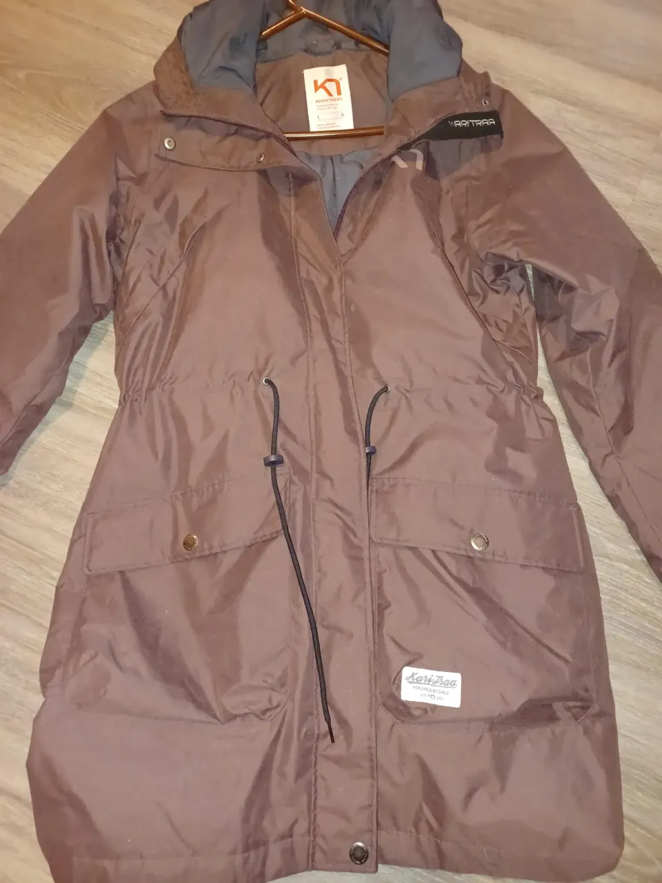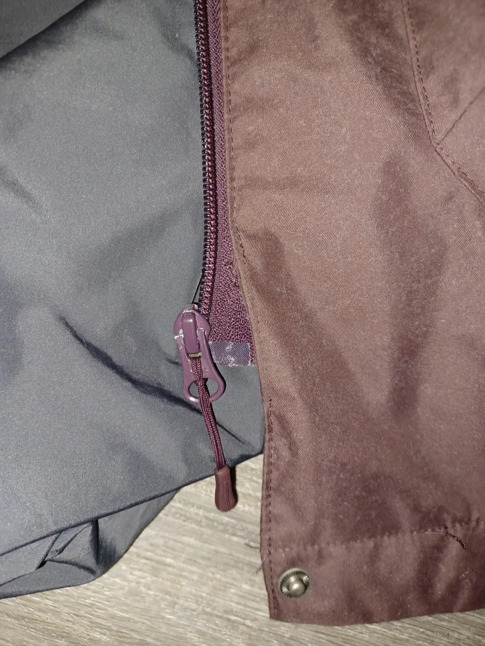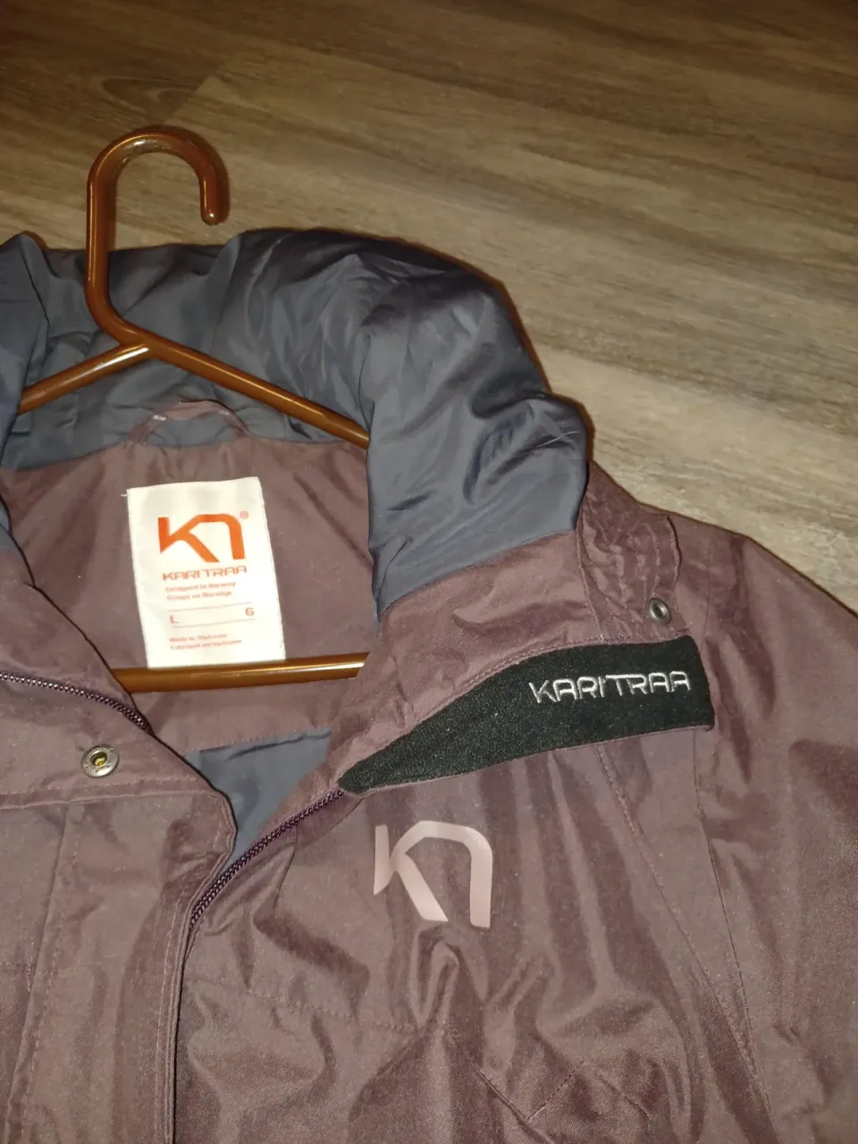 KariTraa vinterjacka, vinröd - mot lila. Strl.42. Använd 1 vinter. Dragkedjan har lossat lite längst, går att sy fast. Annars toppskick.