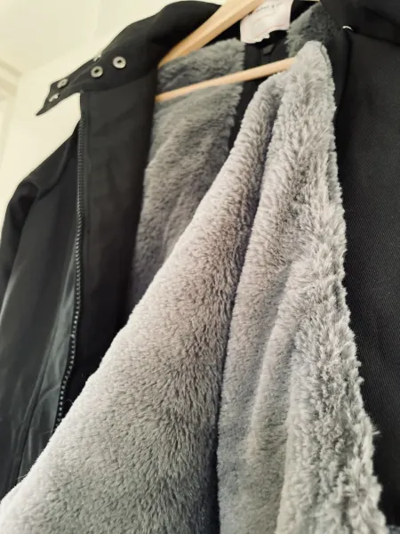 • Stor, avtagbar lammpäls-krage skyddar halsen (ingen halsduk behövs).