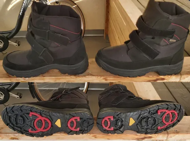 Vinterkängor med infällbara dubbar. Storlek 41, dam. Fodrade och fuktavstötande. Säljes pga fel storlek. Nyskick.