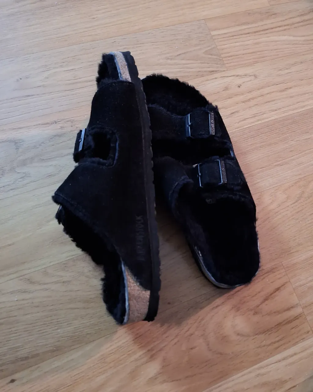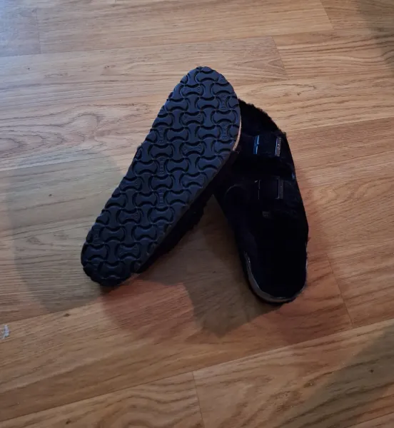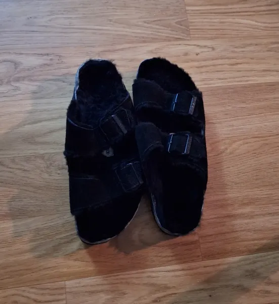 Nya birkenstock sandaler med päls, Färg: svarta, Storlek: 41