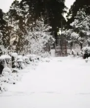 Vilse i en snöstorm på småvägar nära en sjö i Minnesota